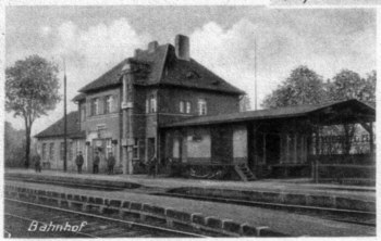 | Ansichtskarte, ca 1915 | Ausschnitt aus AK, der Bahnhof |