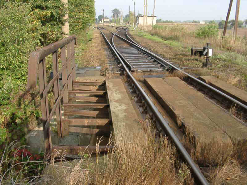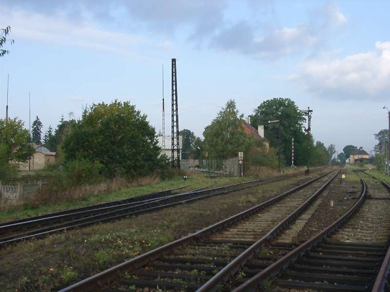 An der Station befindet sich ein Tanklager, welches von der Bahn noch bedient wird. Blanke Schienenköpfe weisen darauf hin. Schrankenhäuschen und Stellwerk sind auch besetzt, was unsere Annahme verstärkt. |
