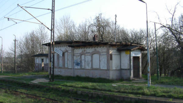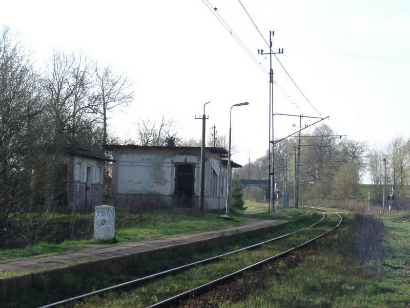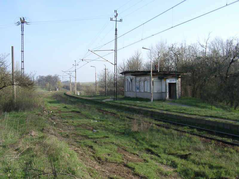 Die Bahnstation liegt oberhalb des Ortes in nicht allzugroßer Entfernung. Ein Haltepunkt an der einstmals zweigleisigen Strecke, ohne jegliche weitere Anlagen, dementsprechend Schlicht ausgestattet und nur für den Personenverkehr gedacht.