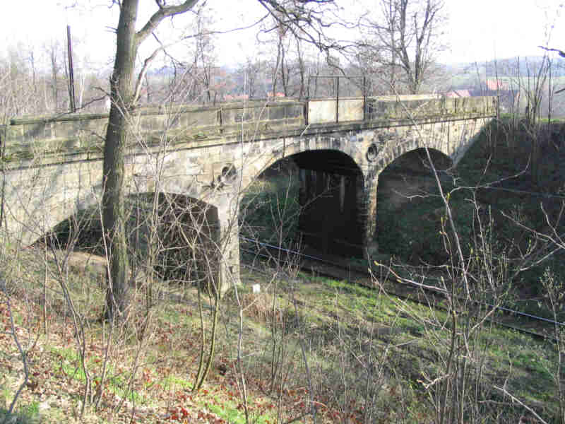 Da wir nicht mit dem Zug, sondern mit dem Auto unterwegs sind ! (Man erreicht damit Stellen, wo man mit dem Zug nicht hinkommt), sieht man natürlich auch Bauwerke, die vom Zug aus nicht zu sehen sind. So sind wir auf der Straße von Langenöls nach Schosdorf an einer interresanten Unterführung vorbeigekommen, die Ursprünglich einspurig aber später, wahrscheinlich auf Grund erhötem Verkehrsaufkommens, zweispurig ? ausgebaut wurde. Ein interesantes Detail welches bestimmt auch auf der Modellbahnanlage gut ausehen würde.