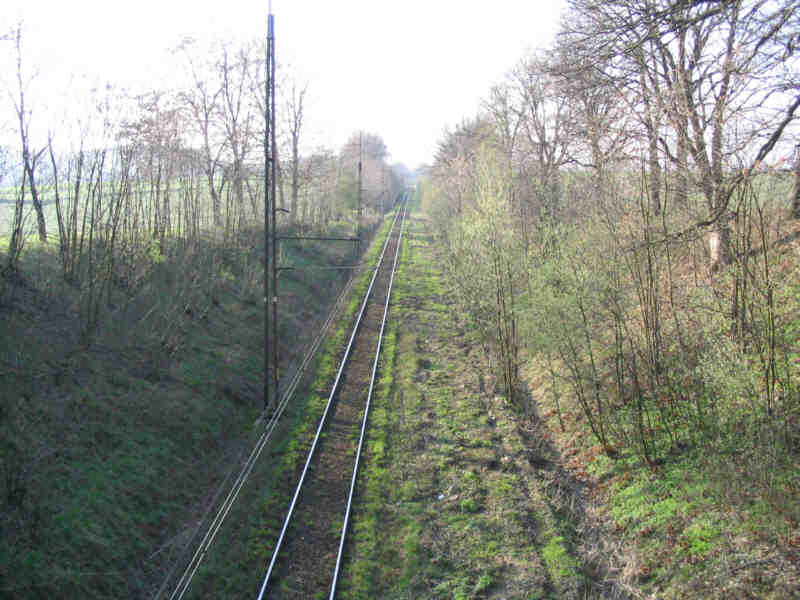 Straße wieder die Seite und wir unterqueren die Bahnstrecke. Aber auch Durchlässe für Bäche unterbrechen den Bahndamm.